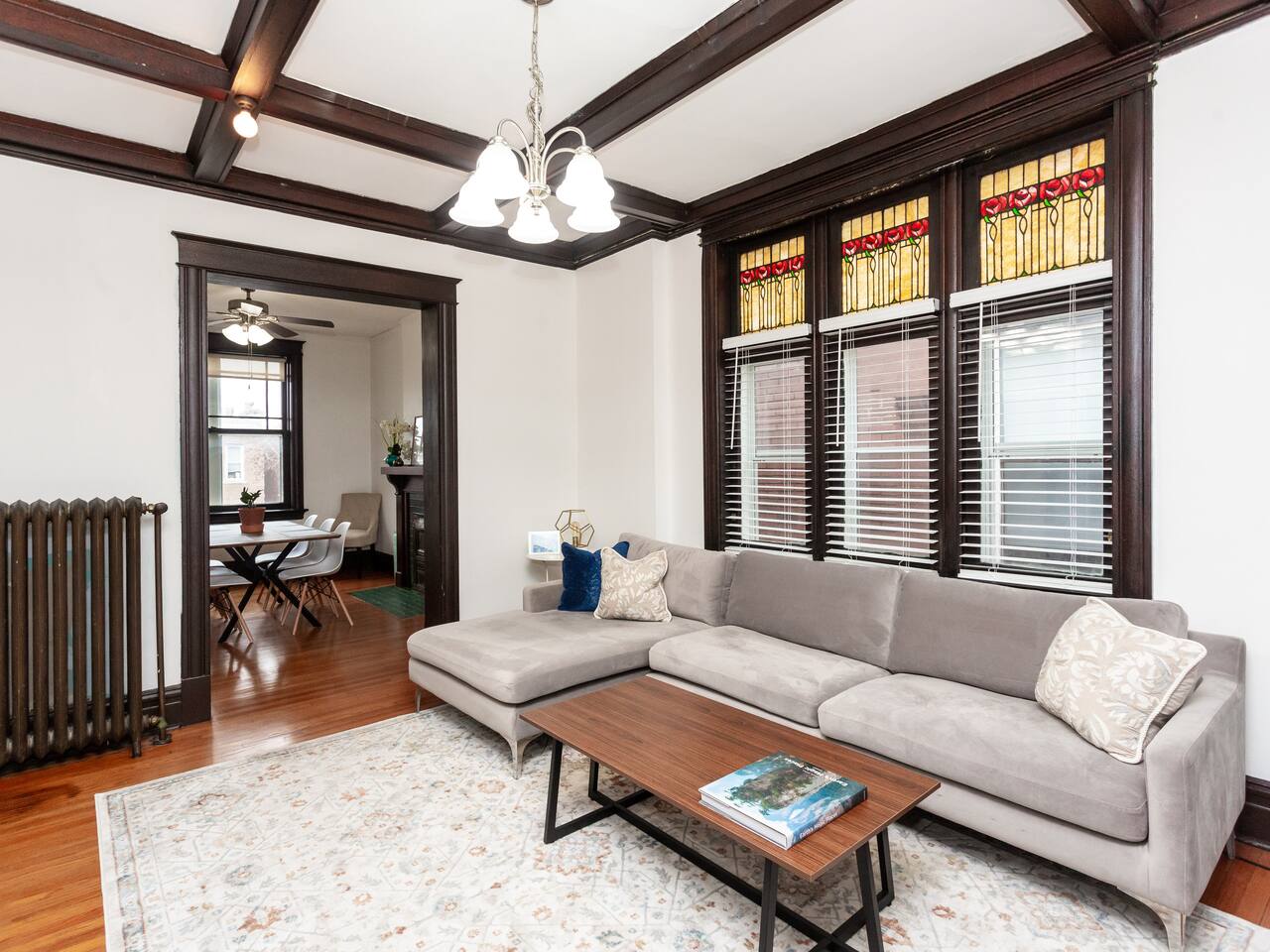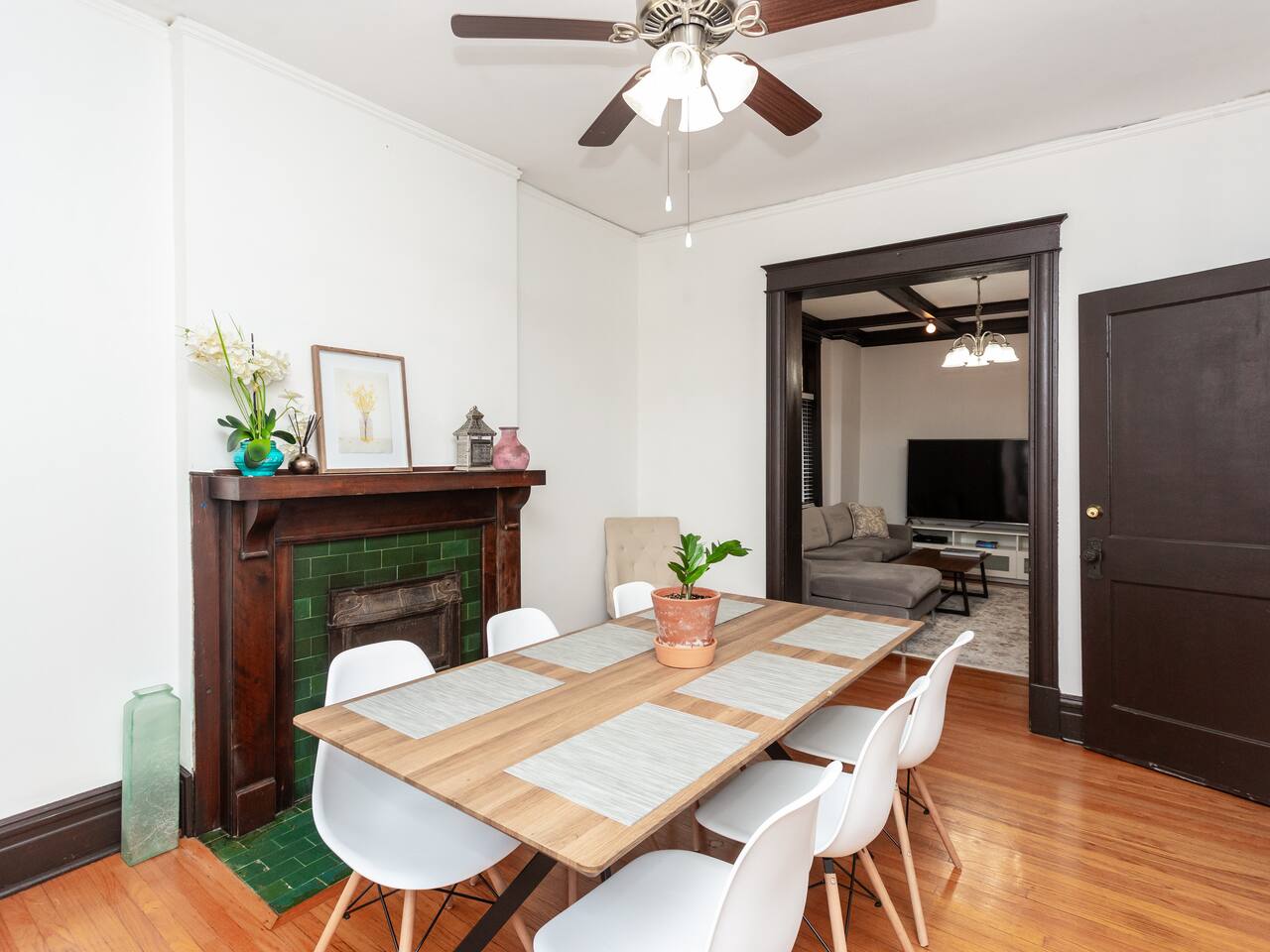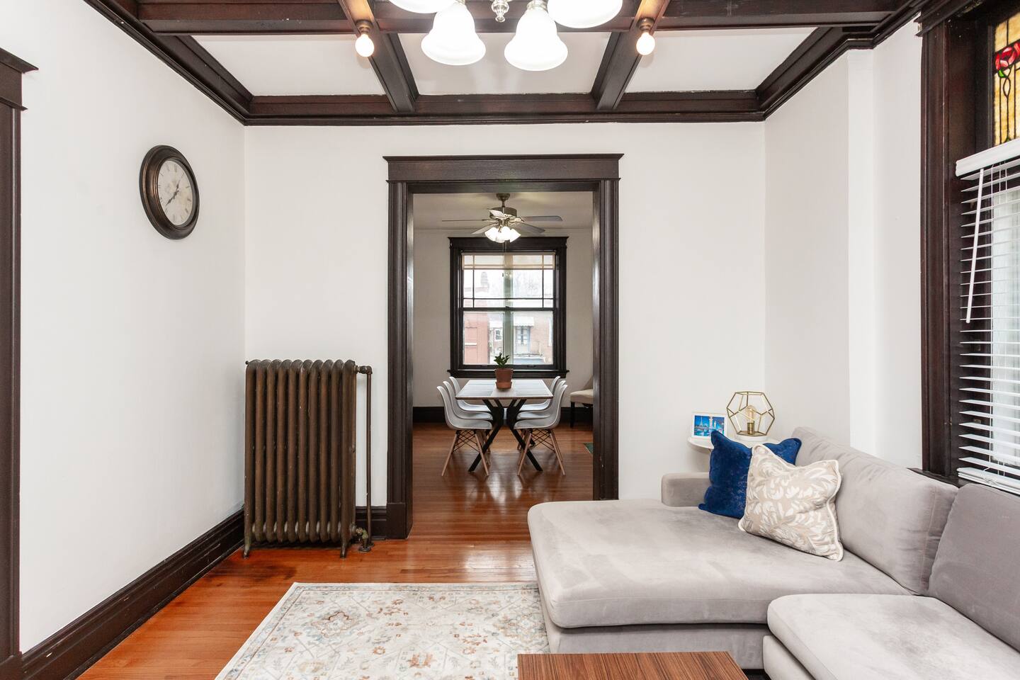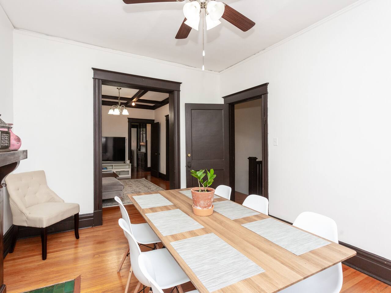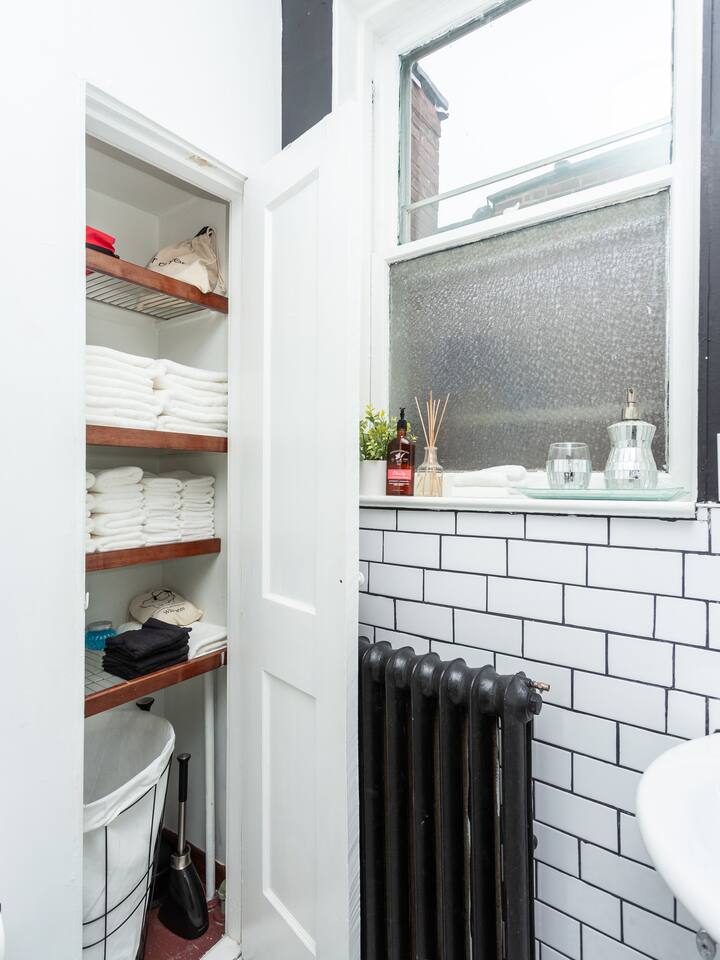 This charming, bright and clean apartment is full of lovely historic features as well as modern amenities. Key Features: - Spacious Living Room with Comfy Sofa, 60 inch Smart TV & Games - Fully equipped and stocked kitchen with coffee, tea and cooking essentials - Large Formal Dining Area - Separate Workspace - 1 King Bedroom with 50 inch Smart TV - 2 Queen Bedrooms - 1 Stocked Bathroom with hair dryer, first aid kit, shampoo, conditioner and body wash - Backyard with Firepit and Seating Area - Laundry Area in Basement with Washer/Dryer, laundry detergent and ironing board The home is professionally cleaned & disinfected between guests.