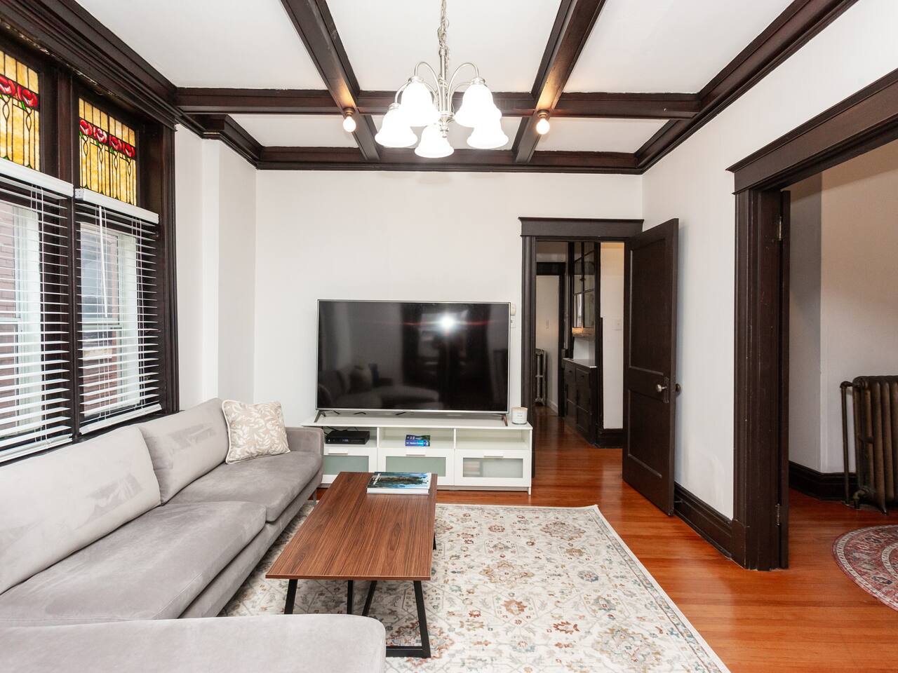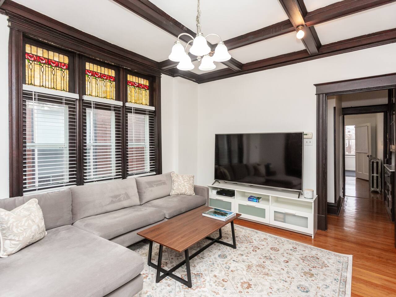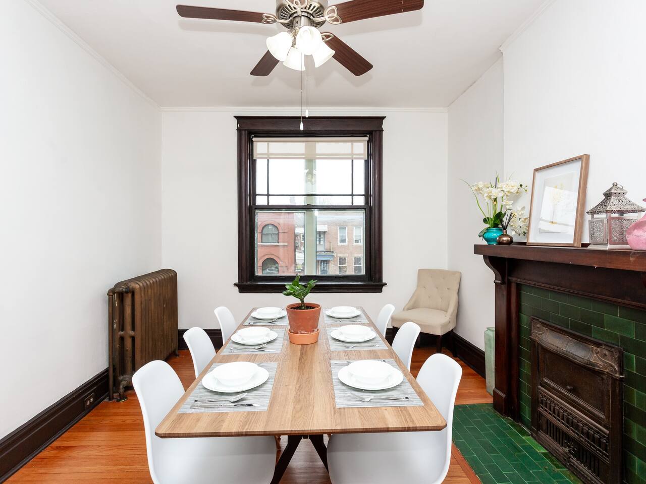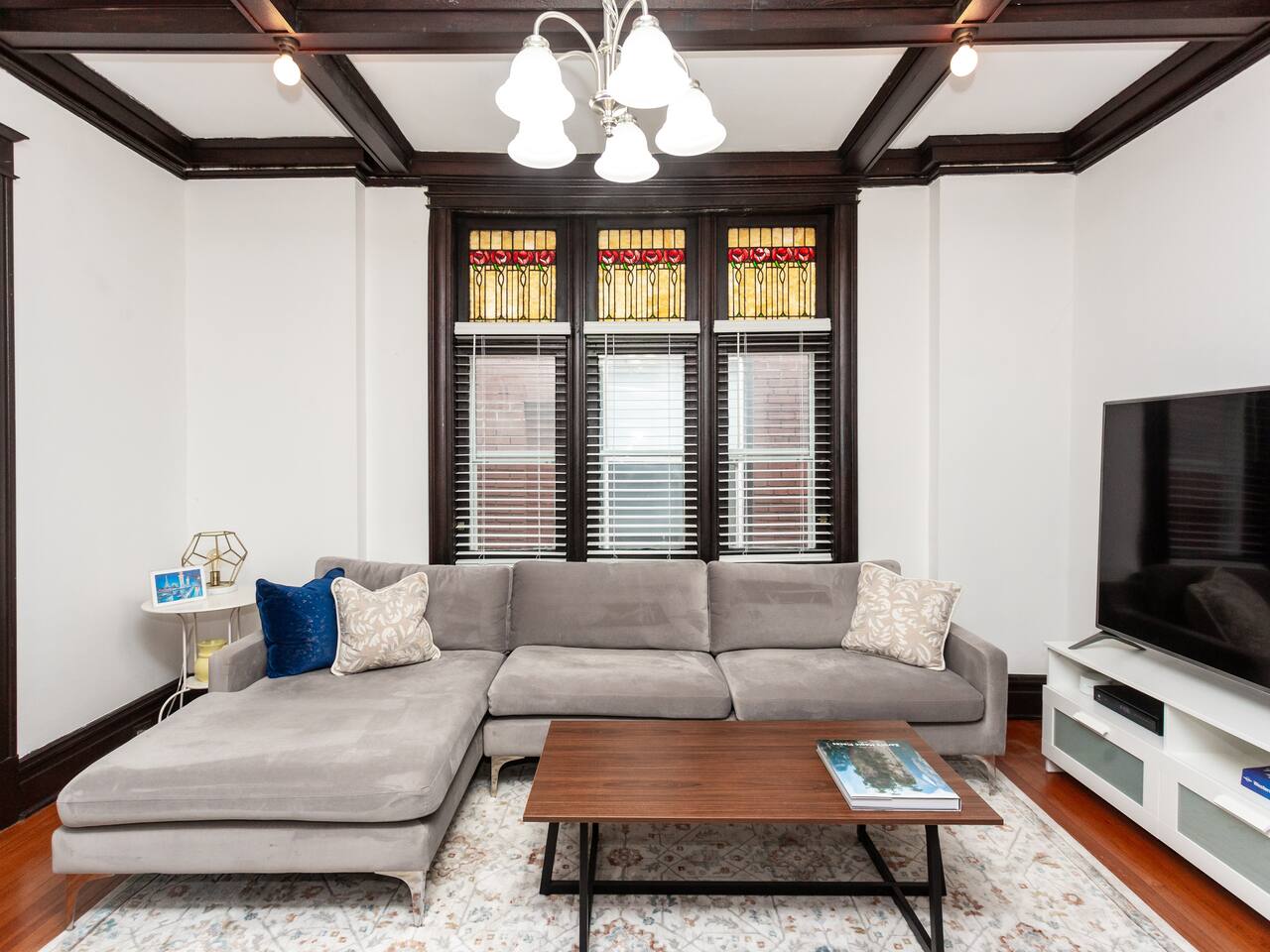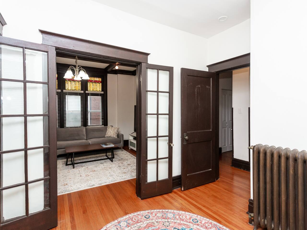 This charming, bright and clean apartment is full of lovely historic features as well as modern amenities. Key Features: - Spacious Living Room with Comfy Sofa, 60 inch Smart TV & Games - Fully equipped and stocked kitchen with coffee, tea and cooking essentials - Large Formal Dining Area - Separate Workspace - 1 King Bedroom with 50 inch Smart TV - 2 Queen Bedrooms - 1 Stocked Bathroom with hair dryer, first aid kit, shampoo, conditioner and body wash - Backyard with Firepit and Seating Area - Laundry Area in Basement with Washer/Dryer, laundry detergent and ironing board The home is professionally cleaned & disinfected between guests.