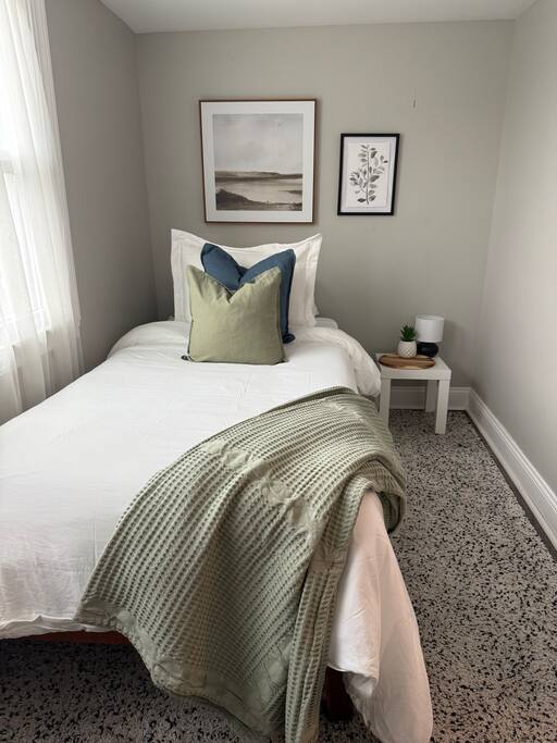 We had so much fun designing the perfect "home away from home", and once renovations were completed to our satisfaction, we got started decorating every corner with the highest quality furnishings and fixtures. Take a walk throughout the entire 2 bedroom, 3 bed, and 1 bath home and find surprises in every corner. Whether you are just getting away for the weekend or looking for an extended stay, we are committed to creating comfortable experiences for our guests! We offer contact-free check-in, 24/7 support, and a comfortable, spacious, and clean home! ★ 3 Beds: 2 queen beds in each bedroom with a single-person sofa sleeper in the side nook ★ 1 Bathroom: each including a standing shower, toilet, and sink with separate doors ★ Kitchen: fully stocked with essential cookware, dishes & glassware ★ Private Living Room / Nook: amazingly comfy sofa along with a flat-screen TV ★ Dining Area: complete dining table with enough space for 4+ people Amenities included: ★ Linens provided: towels, sheets, pillows & blankets ★ High-speed WiFi ★ Free Off-Street and Street Parking