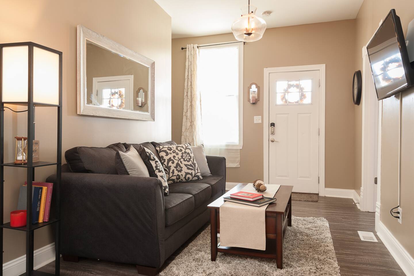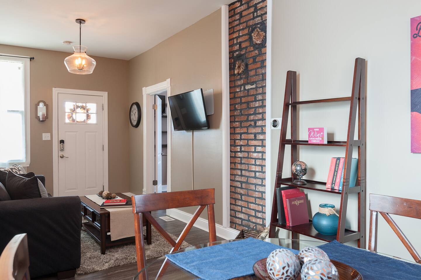 The Space This ground-floor unit offers comfort, convenience, and modern touches in the heart of Holly Hills. With 2 bedrooms, a full kitchen, dining area, and private entrance, it’s perfect for couples, small families, traveling nurses, or extended stays. Cook meals in the fully stocked kitchen, gather at the dining table, or relax in the living area after exploring St. Louis. The washer/dryer and full bathroom with shower/tub combo make longer visits easy and comfortable. ✨ Features 🛏 2 Bedrooms – queen beds, main floor ➕ Sofa + air mattress for extra guests 🚿 1 Bathroom – shower/tub combo 🍳 Full Kitchen – cookware, dishes & glassware 🍽 Dining Area – seats 4 ✨ Amenities 🔥 Backyard Fire Pit 🧺 Washer & Dryer In-Unit 📶 High-Speed WiFi 🅿️ Parking – pad in back + street 🛏 Fresh Linens & Towels