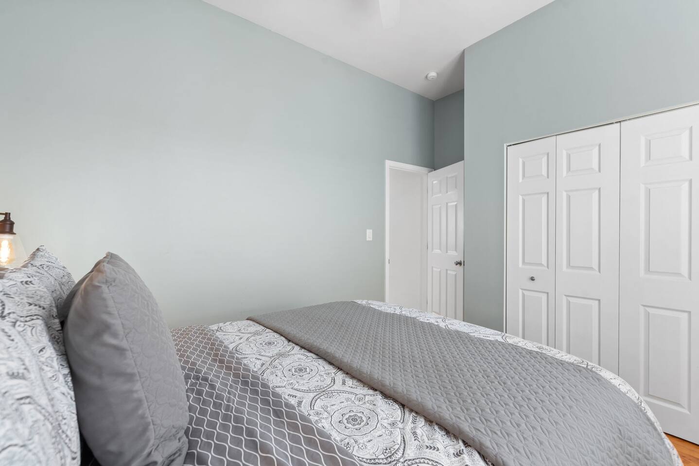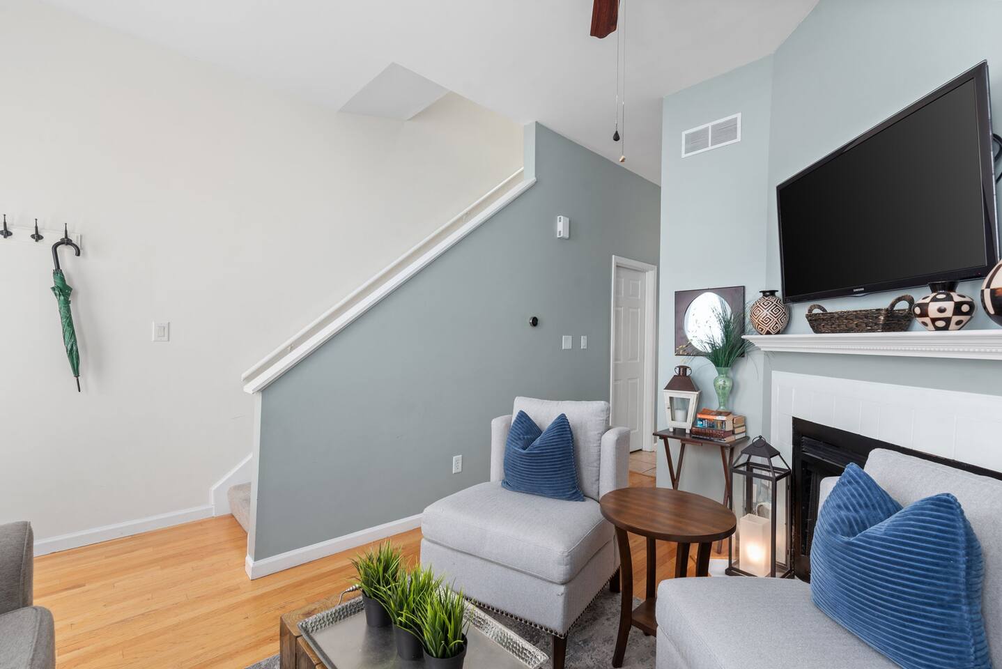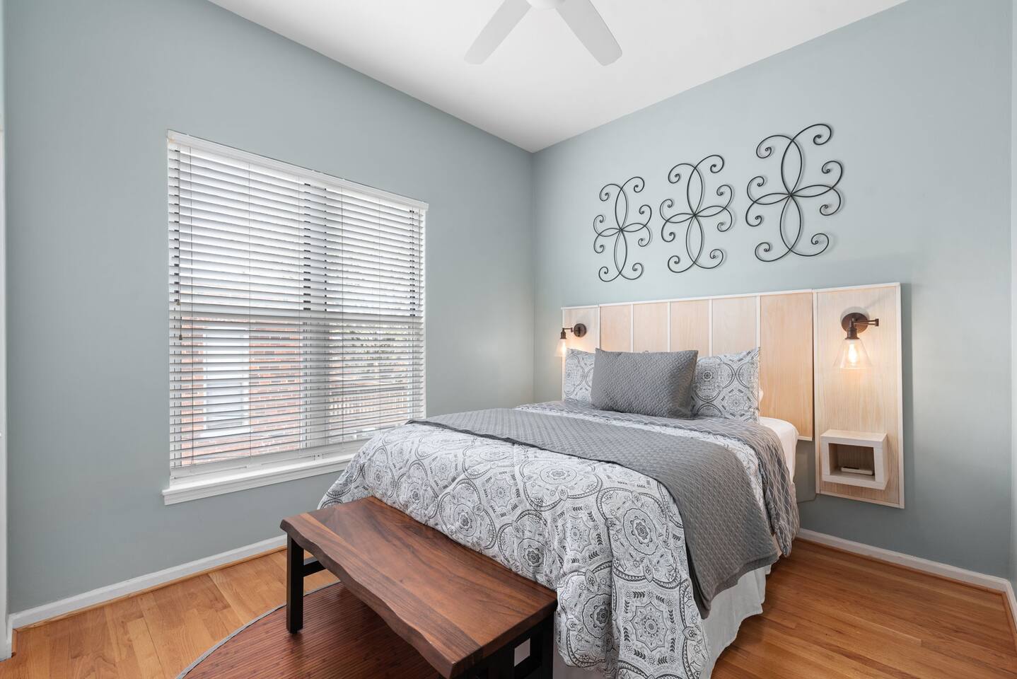 We had so much fun designing the perfect "home away from home", and once renovations were completed to our satisfaction, we got started decorating every corner with the highest quality furnishings and fixtures. Take a walk throughout the entire 2 bedroom, 3 bed, and 1.5 bath home and find surprises in every corner. Whether you are just getting away for the weekend or looking for an extended stay, we are committed to creating comfortable experiences for our guests! We offer contact-free check-in, 24/7 support, and a comfortable, spacious, and clean home! ★ 3 Beds: - MAIN FLOOR: 1 queen-size sofa sleeper in the living room - SECOND FLOOR: 2 queen-size beds in each bedroom ★ 1.5 Bathrooms: - MAIN FLOOR: a half bathroom with a toilet and sink - SECOND FLOOR: a full bathroom with a standing shower, toilet, and sink ★ Kitchen: fully stocked with essential cookware, dishes & glassware ★ Living Room: amazingly comfy sofa along with a flat-screen TV ★ Dining Area: complete dining table and bar with enough space for 6+ people ★ Downstair Den: amazingly comfy futon and chair seating along with a flat-screen TV Amenities included: ★ Linens provided: towels, sheets, pillows & blankets ★ High-speed WiFi ★ Dedicated Off-Street Garage Parking (1 Vehicle) and Free Street Parking ★ Free In-Unit Washer and Dryer ★ Dedicated and Private Backyard Seating Area ★ Self Check-In via Smart Lock Key Code ACCESSIBILITY: The bedrooms with the queen size beds and full bathroom are on the second floor of the home. There is 8-10 steps to the second floor.