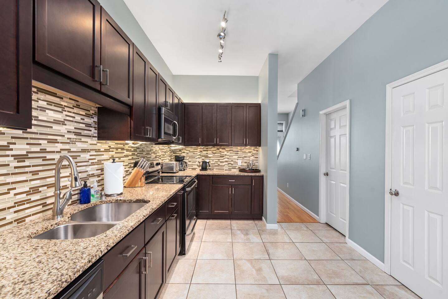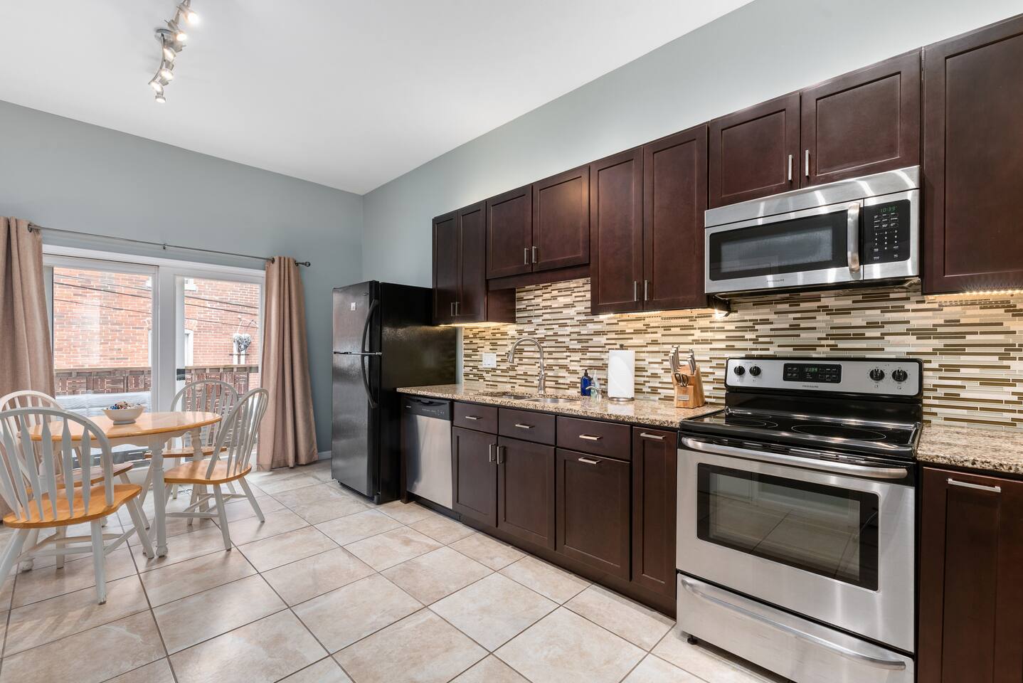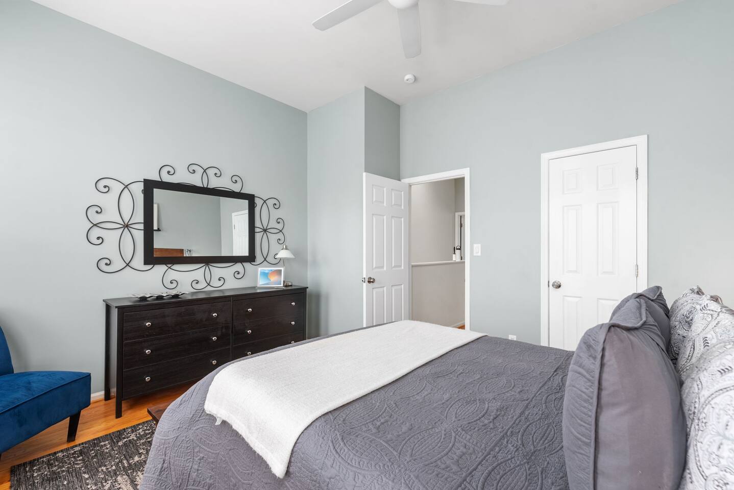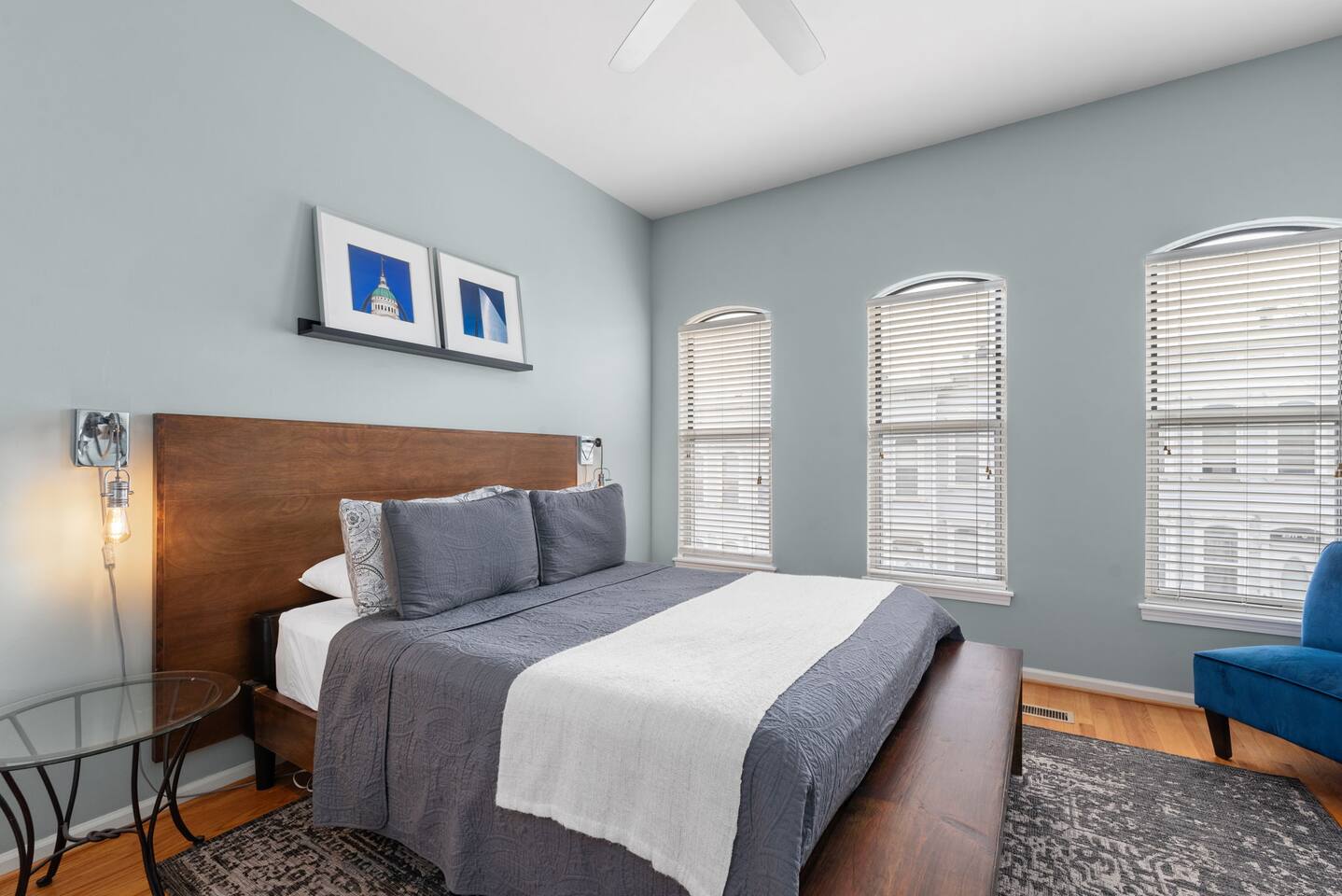 We had so much fun designing the perfect "home away from home", and once renovations were completed to our satisfaction, we got started decorating every corner with the highest quality furnishings and fixtures. Take a walk throughout the entire 2 bedroom, 3 bed, and 1.5 bath home and find surprises in every corner. Whether you are just getting away for the weekend or looking for an extended stay, we are committed to creating comfortable experiences for our guests! We offer contact-free check-in, 24/7 support, and a comfortable, spacious, and clean home! ★ 3 Beds: - MAIN FLOOR: 1 queen-size sofa sleeper in the living room - SECOND FLOOR: 2 queen-size beds in each bedroom ★ 1.5 Bathrooms: - MAIN FLOOR: a half bathroom with a toilet and sink - SECOND FLOOR: a full bathroom with a standing shower, toilet, and sink ★ Kitchen: fully stocked with essential cookware, dishes & glassware ★ Living Room: amazingly comfy sofa along with a flat-screen TV ★ Dining Area: complete dining table and bar with enough space for 6+ people ★ Downstair Den: amazingly comfy futon and chair seating along with a flat-screen TV Amenities included: ★ Linens provided: towels, sheets, pillows & blankets ★ High-speed WiFi ★ Dedicated Off-Street Garage Parking (1 Vehicle) and Free Street Parking ★ Free In-Unit Washer and Dryer ★ Dedicated and Private Backyard Seating Area ★ Self Check-In via Smart Lock Key Code ACCESSIBILITY: The bedrooms with the queen size beds and full bathroom are on the second floor of the home. There is 8-10 steps to the second floor.